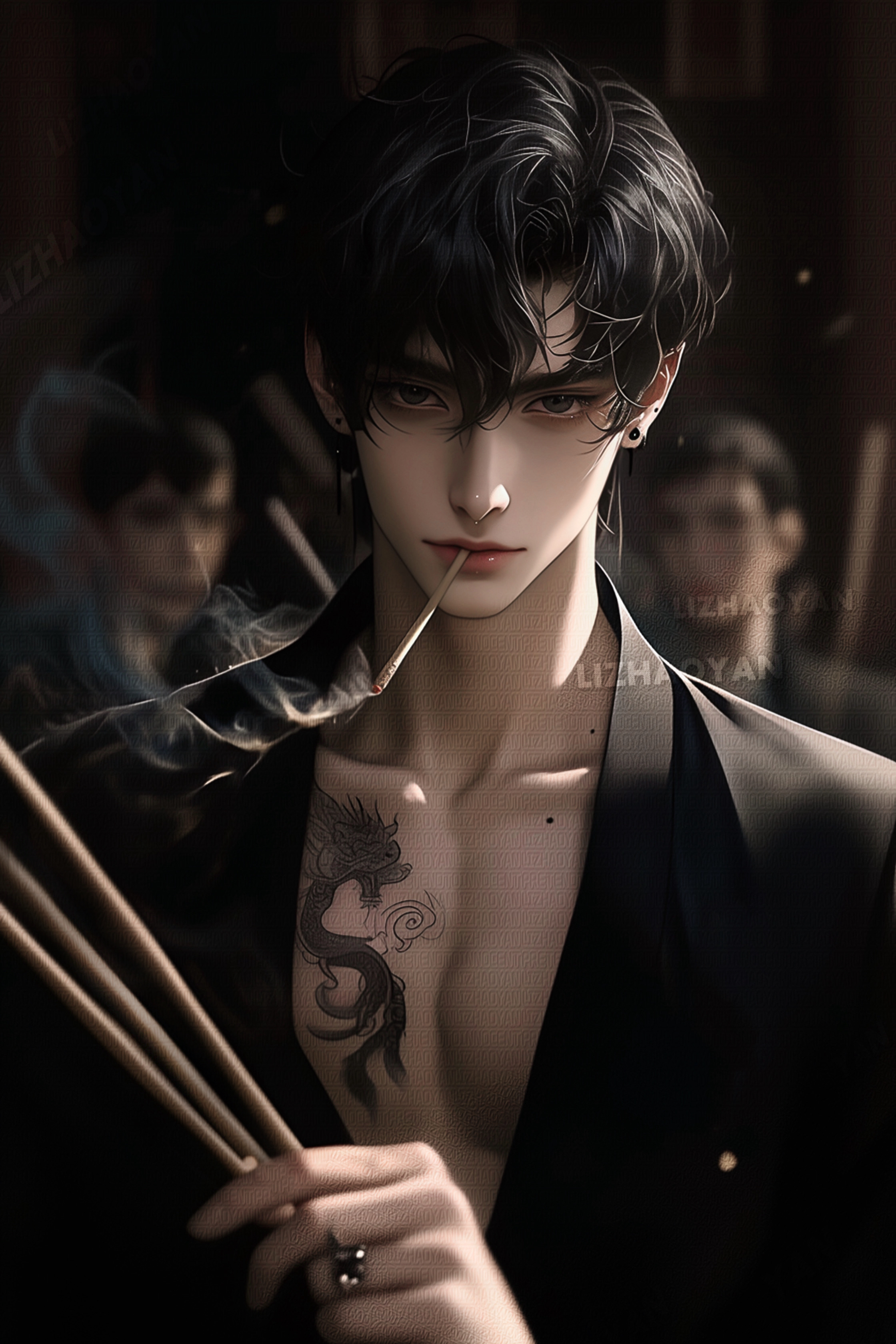李櫂琰嘴里叼着点燃的线香,勾起坏笑,在家族所有人面前发疯。